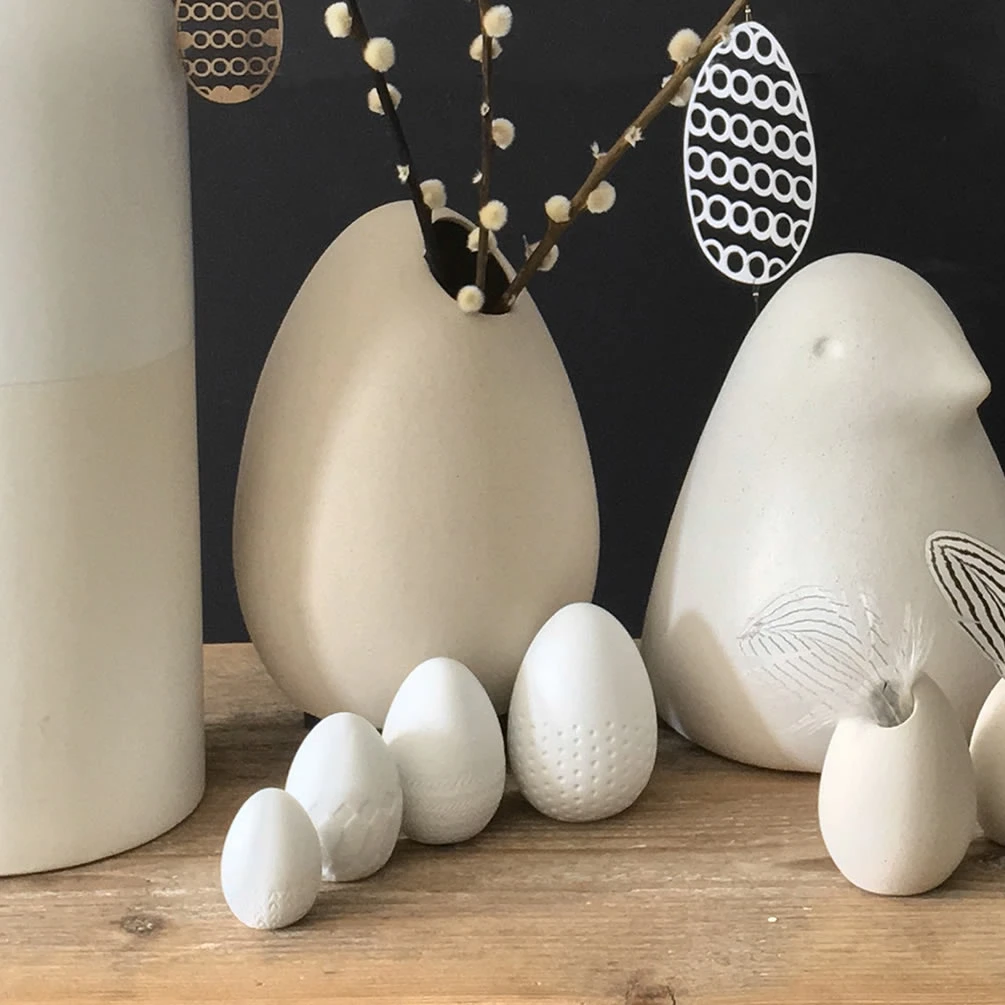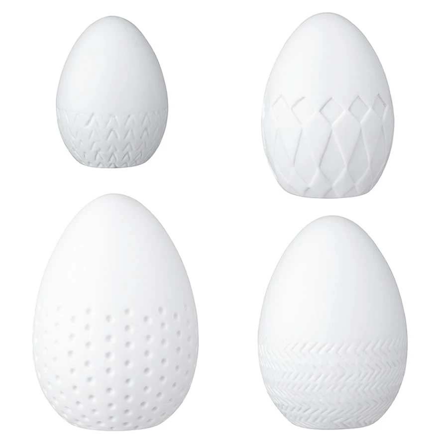 4er Set Frühlingsboten Porzellaneier Relief 5-9cm