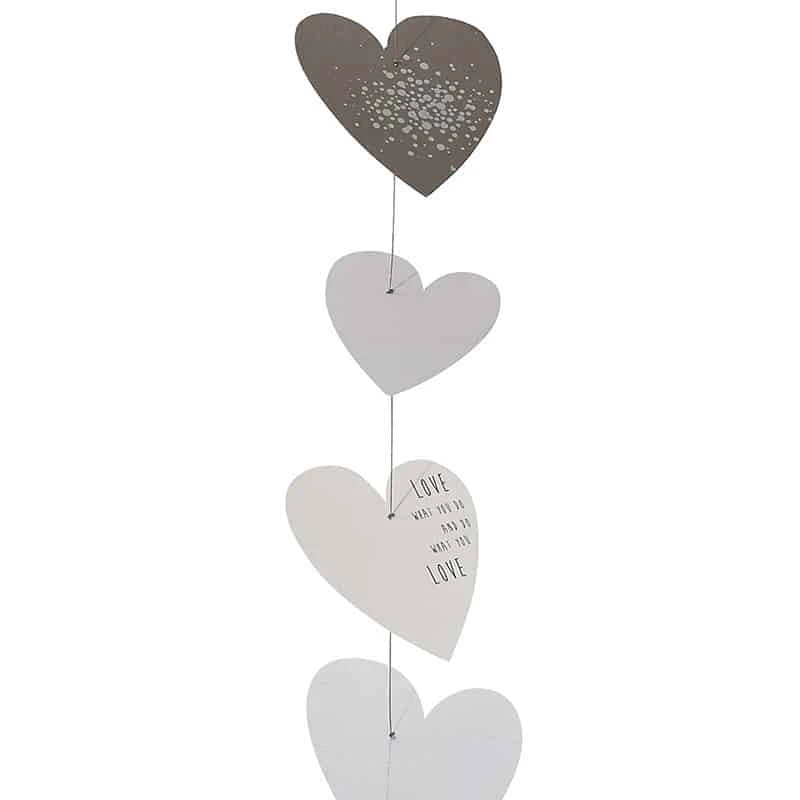 Die vielen kleinen Herzchen dieser Girlande von räder bestehen aus unterschiedlichen, farbigen Papiersorten, die zum Teil auch glänzen. Das setzt an passenden Stellen gelungene Akzente – und macht die mit der Girlande dekorierten Räumlichkeiten gleich noch viel einladender! Die „Typografie“-Ausführung der Girlande hat dazu noch einige Sprüche, die auf den Herzchen stehen.