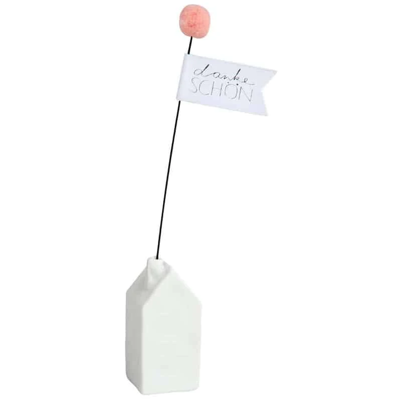 Wenn das mal kein moderner Gruß ist: In einem kleinen Papierhäuschen befindet sich ein noch kleineres Häuschen aus Porzellan samt Gruß-Fähnchen – ein echter Glücksbringer. Die „Hauspost“ von räder wird dank ihrer kreativen Darstellung so zur idealen Geschenkidee.
