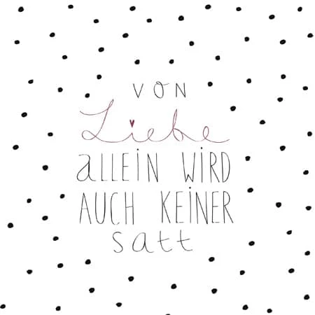 • Aufdruck: „Von Liebe allein wird auch keiner satt“
