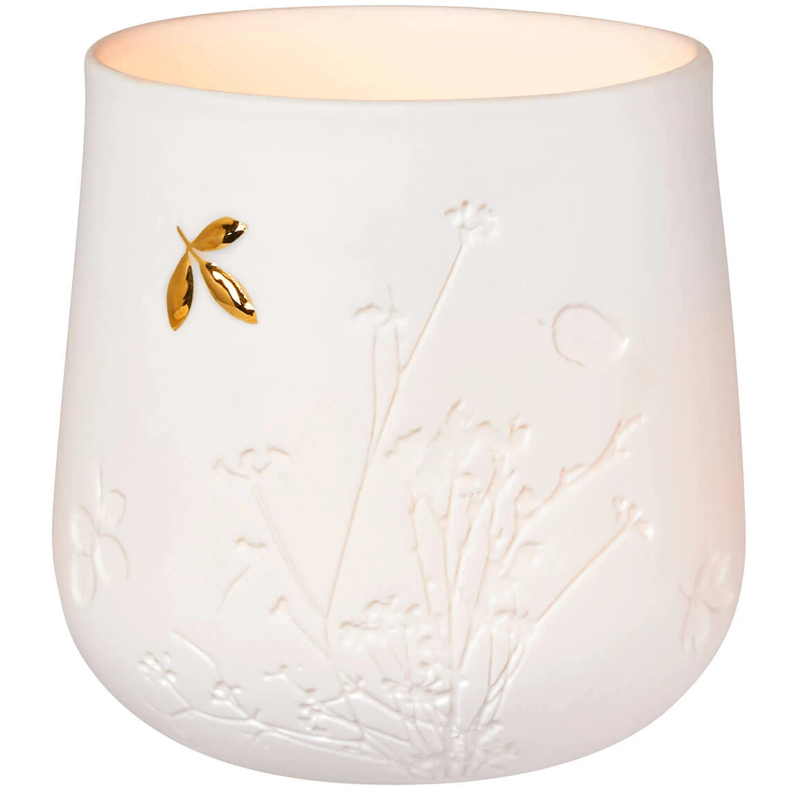 Porzellangeschichten Tischlicht “Goldenes Blatt” 8x8cm