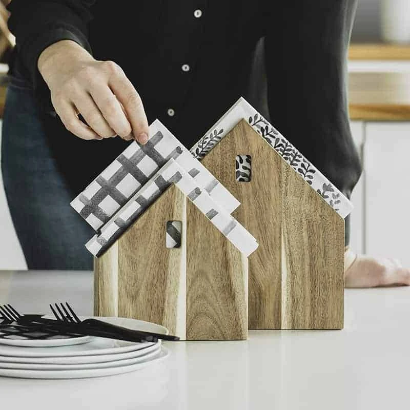 In den stylishen Serviettenhäusern von räder finden Servietten eine feste und gemütliche „Heimat“ auf dem Esstisch – und erleichtern Gästen den Zugriff. Dabei ist jedes der Häuschen nicht nur praktisch, sondern auch ein echtes Unikat mit ganz eigener Akazienholz-Maserung.