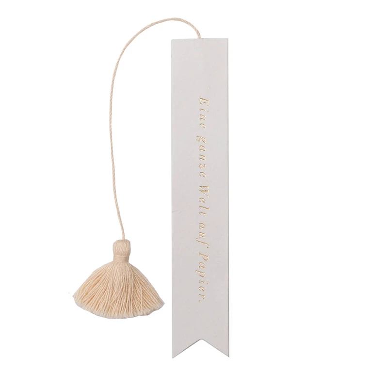 Eselsohren im Lieblingsroman, damit man am nächsten Tag weiß, auf welcher Seite man zuletzt war, gehören mit diesem schicken Lesezeichen von räder der Vergangenheit an. Dabei hat das Schmuckstück gleich zwei besondere Hingucker: Die flauschige, dicke Troddel am Ende und den aufs Papier gedruckten Spruch.