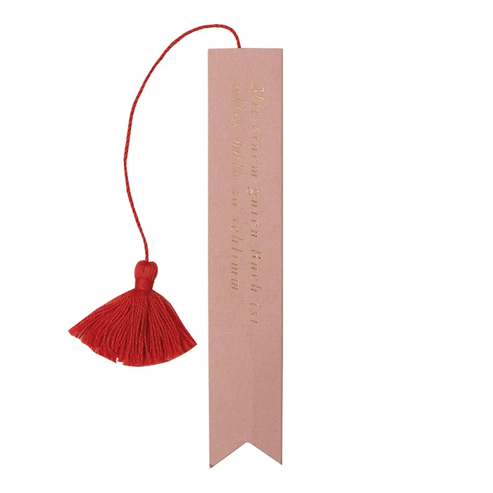 Eselsohren im Lieblingsroman, damit man am nächsten Tag weiß, auf welcher Seite man zuletzt war, gehören mit diesem schicken Lesezeichen von räder der Vergangenheit an. Dabei hat das Schmuckstück gleich zwei besondere Hingucker: Die flauschige, dicke Troddel am Ende und den aufs Papier gedruckten Spruch.